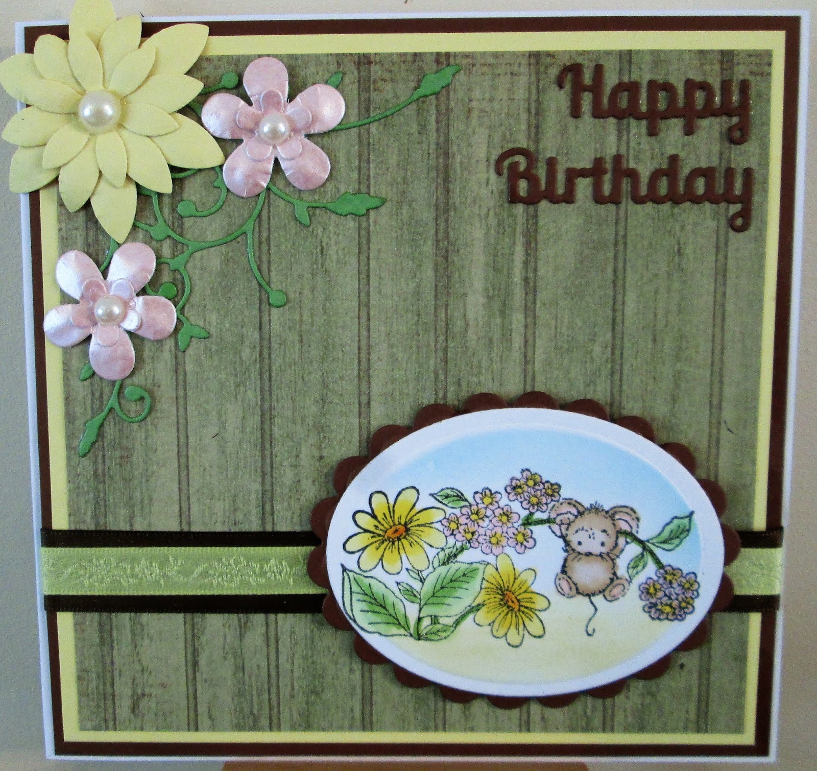 Using Penny Black 30-419 Happy Wishes and 30-095 Flower Festival.